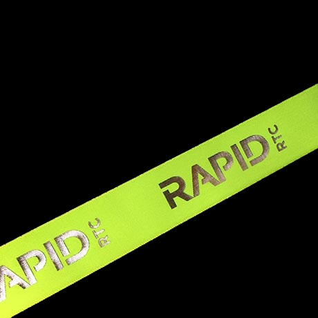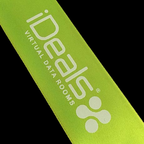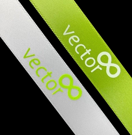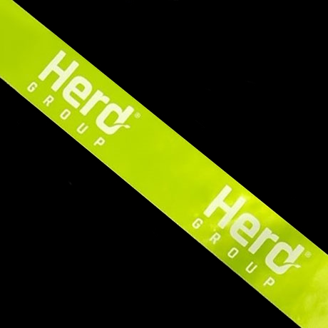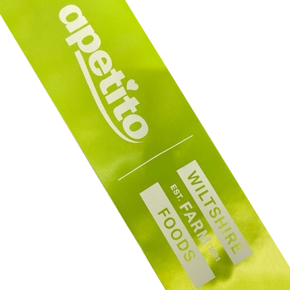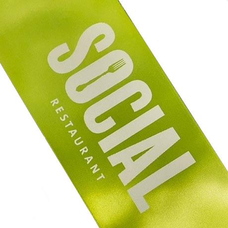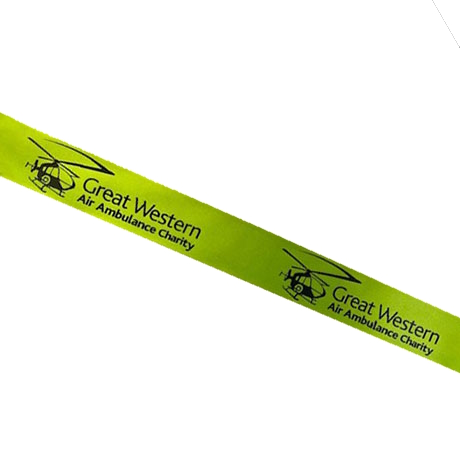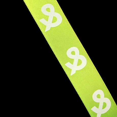 Lime Green printed ribbon, personalised with logos, text and motifs.